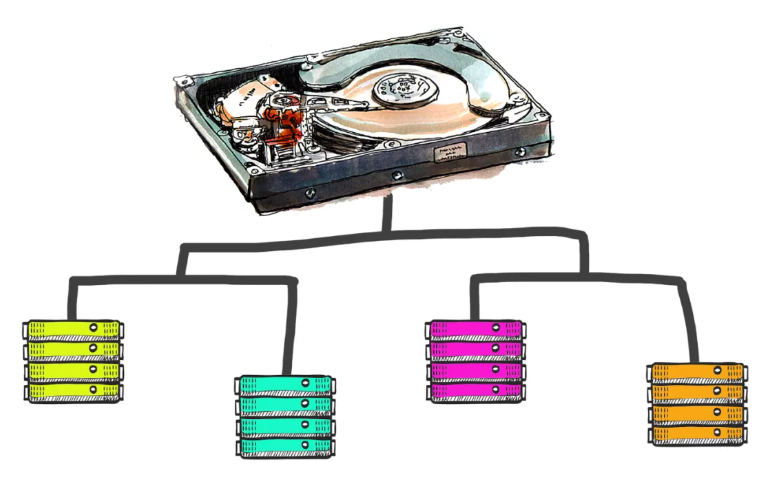分布式存储,简单理解就是用一个“调度系统”把很多普通服务器里的硬盘连接起来,组成一个大硬盘。