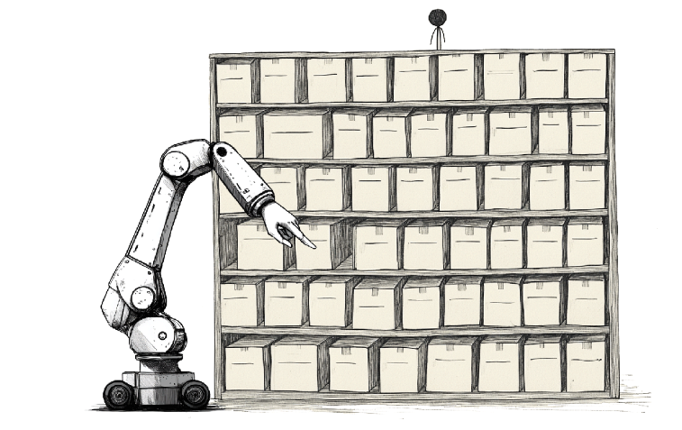 3)货架收到指令开始寻找,由于机械臂速度有限,可能得半小时才能找到。