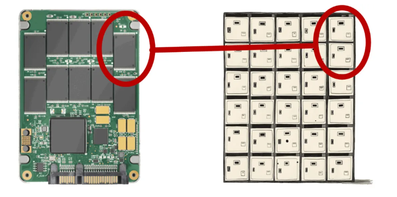 它有点像咱们取快递的柜子,你只要输入柜子号,背后的电路板就直接控制相应的柜门弹开了。完全不需要寻道的过程。