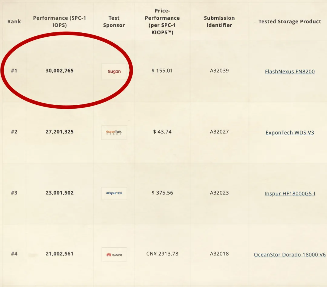 一旦通过认证,FlashNexus 就会以绝对优势登上“SPC-1 榜单”的第一位。