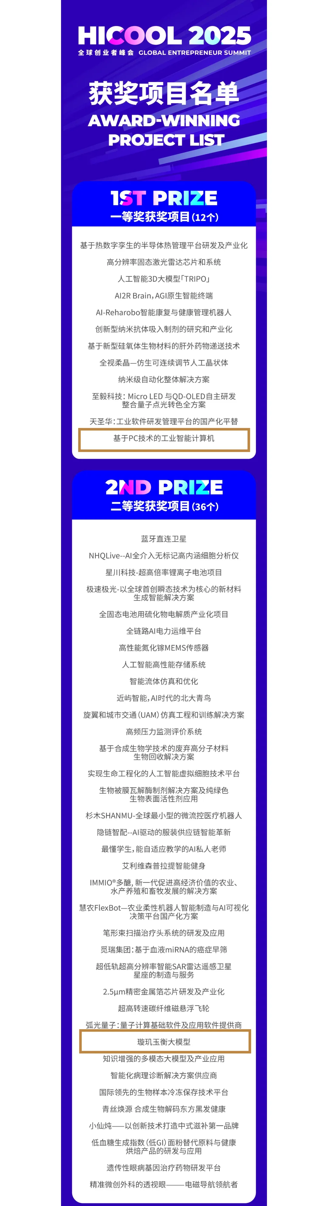 作为全球极具影响力的创业赛事,HICOOL 2025 历经初评、赛区赛、复赛及决赛等多轮严苛遴选,累计举办 155 场高水平赛事,从来自全球 139 个国家和地区的 10055 个项目中最终评选出 200 个获奖项目,其中一等奖仅 12 项、二等奖 36 项,此次同创伟业两家被投企业双双获奖,既是对项目技术实力的权威认证,更是同创伟业深耕硬科技与人工智能赛道投资战略的生动印证。